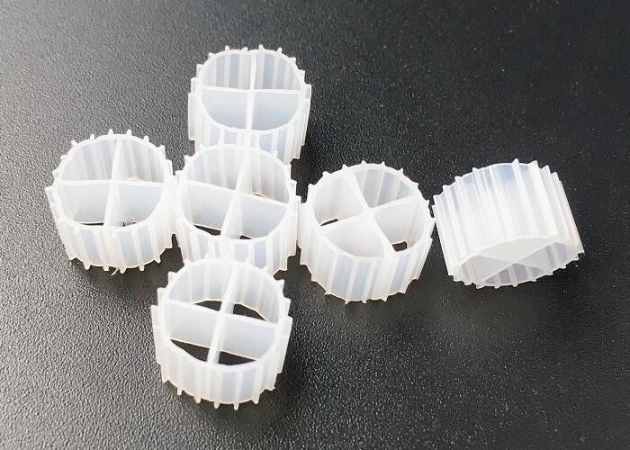 رنگ سفید 11 * 7mm سیستم آبداری بازگردانی MBBR حامل شناور مواد hdpe safty ram
